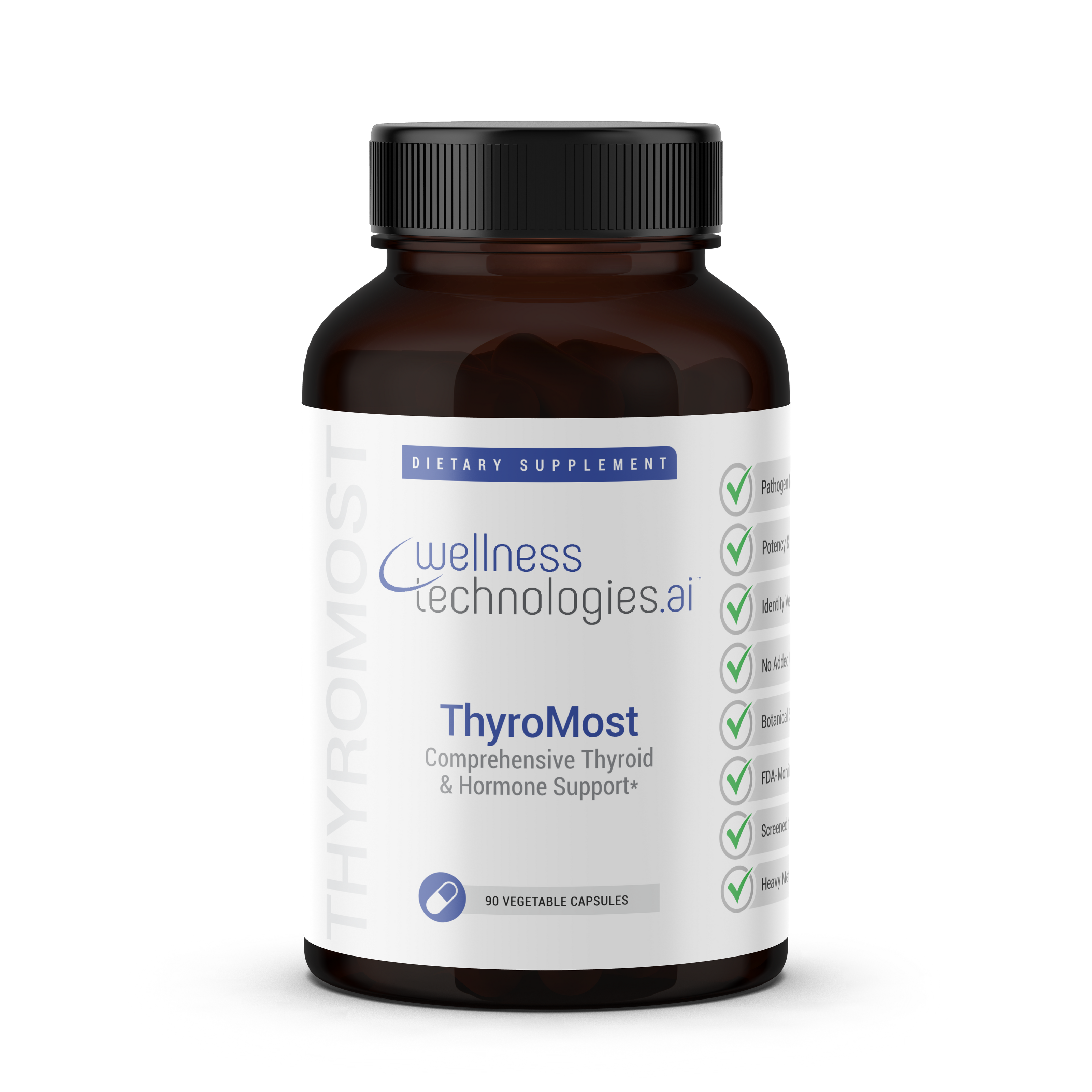 ThyroMost™ supports healthy thyroid function with a synergistic blend of whole foods and botanicals that work together to: